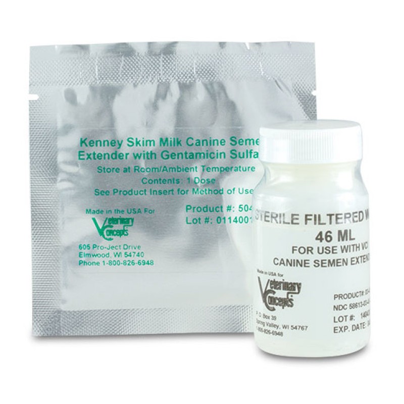 El kit extensor de semen canino de leche desnatada de Kenney le permite almacenar el semen refrigerado para usarlo hasta 48 horas después de la recolección